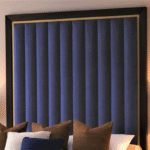 “A modern, clean-lined bed with a simple upholstered headboard and soft neutral bedding in a light-filled, cozy bedroom setting.”